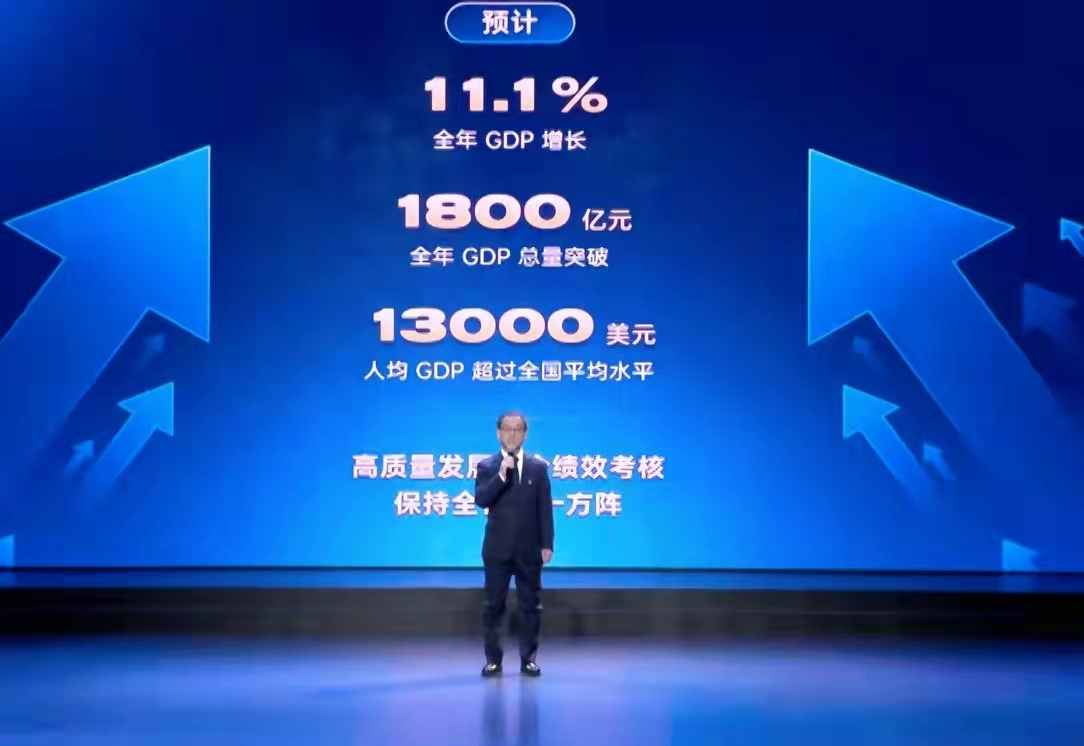 预计全年GDP增长11.1%以上,总量突破1800亿元,人均达到13000美元,超过全国平均水平,高质量发展综合绩效考核保持全省第一方阵。