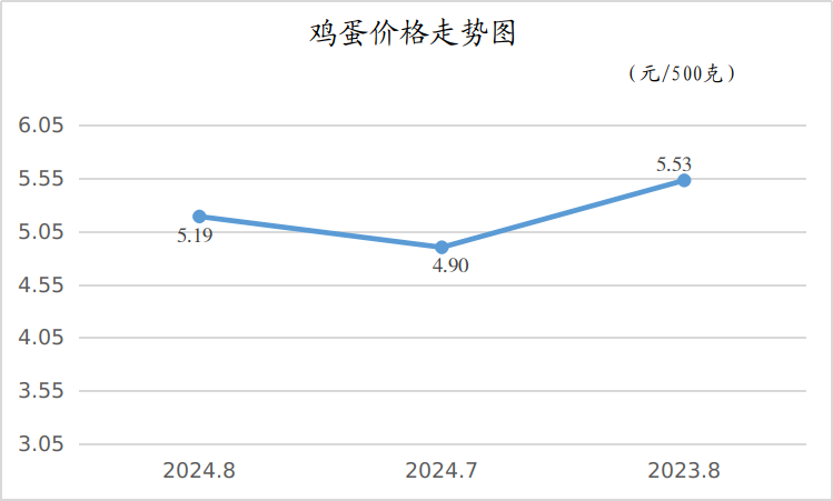 8月份,我市鸡蛋平均零售价格为5.19元/500克,月环比上涨了5.92%,同比下降了6.15%。