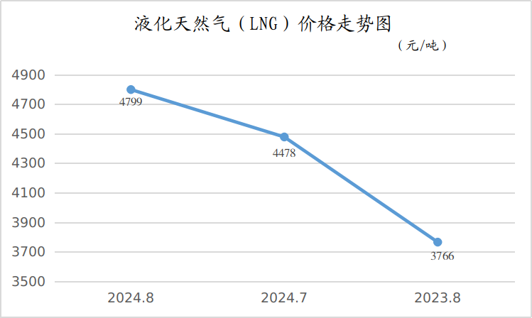 8月份,液化天然气(LNG)平均出厂价格为4799元/吨,月环比、同比分别上涨了7.17%、27.43%。