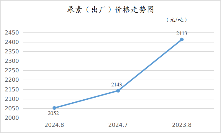 8月份,尿素平均出厂价格为2052元/吨,月环比、同比分别下降了4.25%、14.96%。