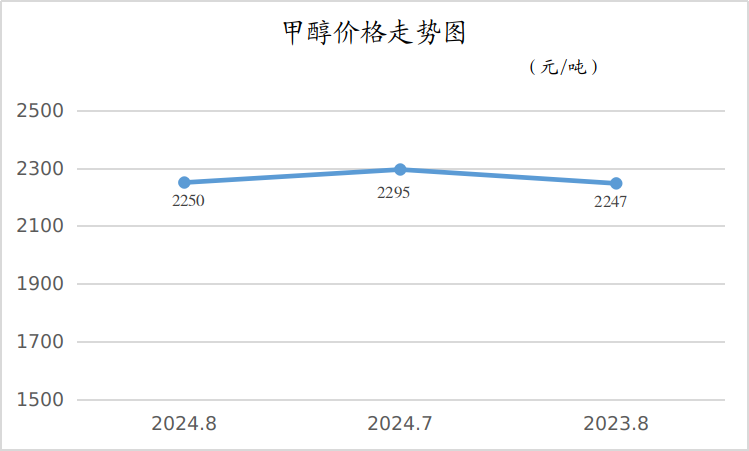 8月份,甲醇平均出厂价格为2250元/吨,月环比下降了1.96%,同比基本持平。
