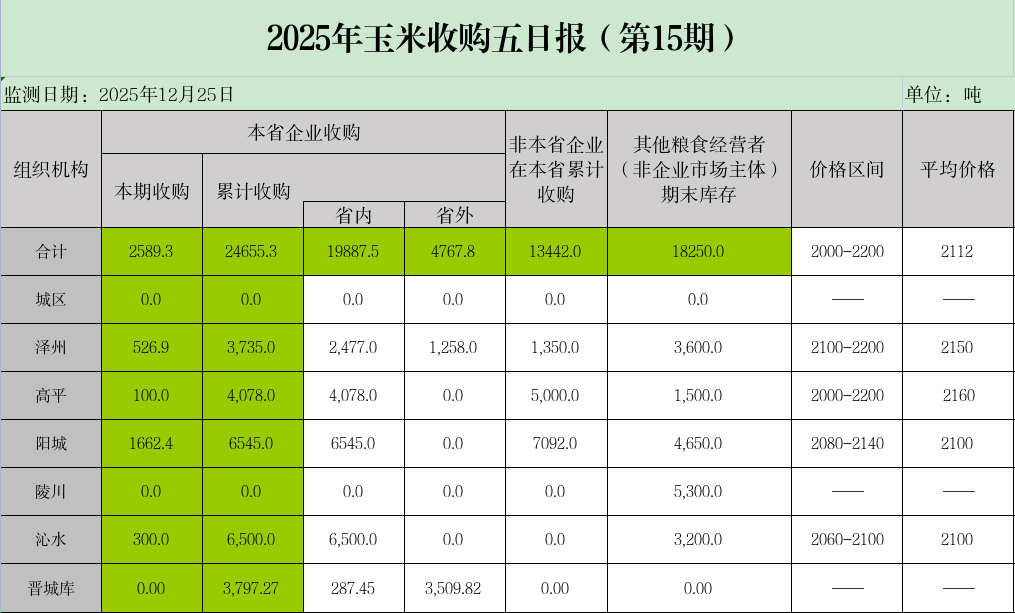2025年玉米收购五日报(第15期)