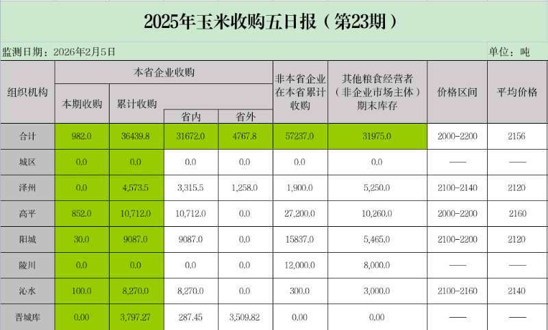 2025年玉米收购五日报(第23期)