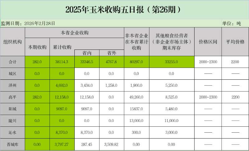 2025年玉米收购五日报(第26期)